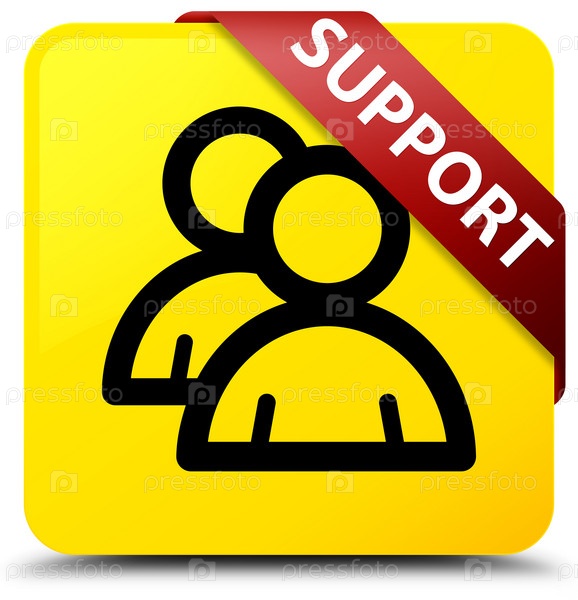 Поддержка (икона группы) жёлтая квадратная кнопка красная лента в углу