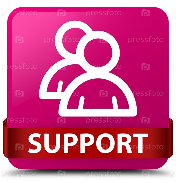 Поддержка (икона группы) розовая квадратная кнопка красная лента посередине
