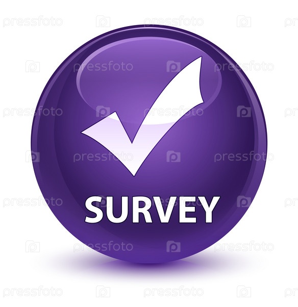 Опрос (икона проверки) стеклянная фиолетовая круглая кнопка