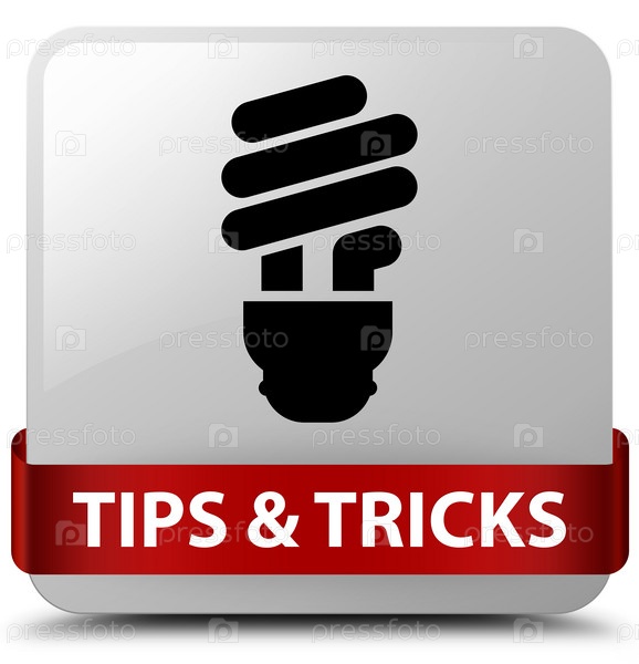 Советы и приемы (икона лампочки) белая квадратная кнопка красная лента посередине