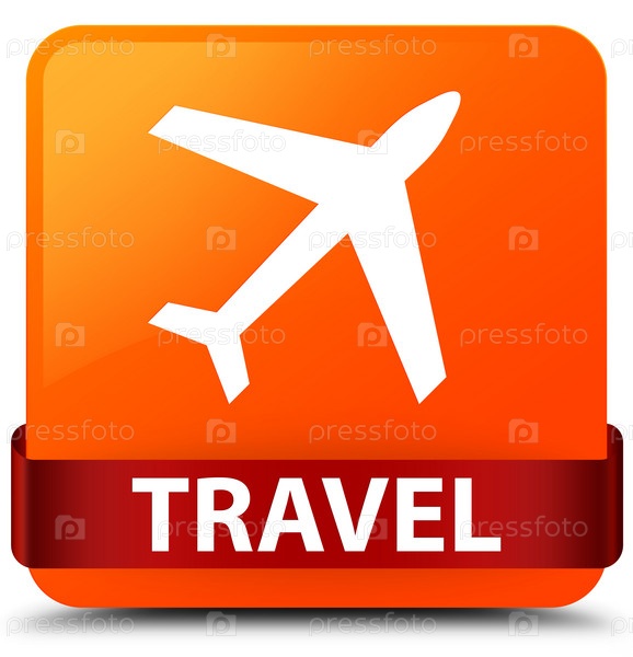 Путешествие (икона самолета) оранжевая квадратная кнопка красная лента посередине