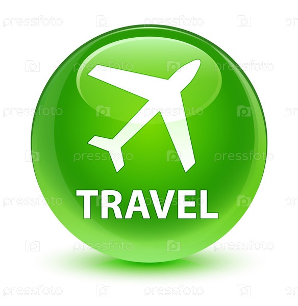 Путешествие (икона самолета) стеклянно-зеленая круглая кнопка