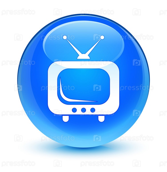 Иконка телевизора стеклянный синий голубой круглый кнопка