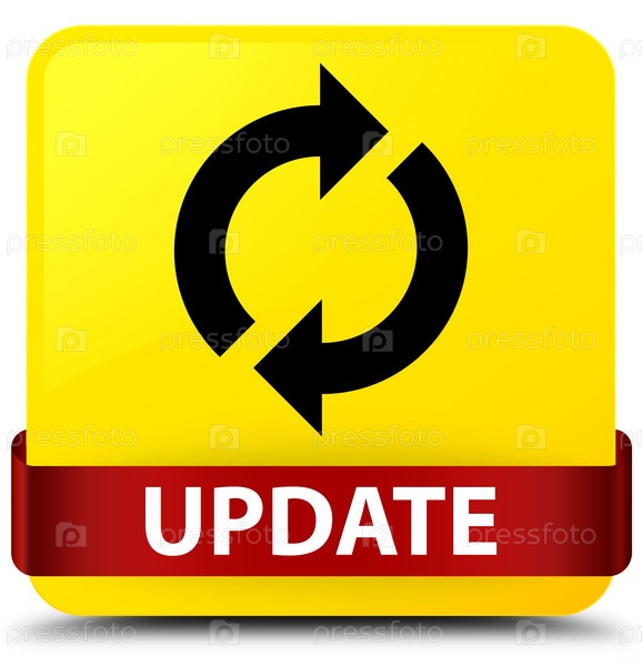 Желтая квадратная кнопка красная лента посередине Update