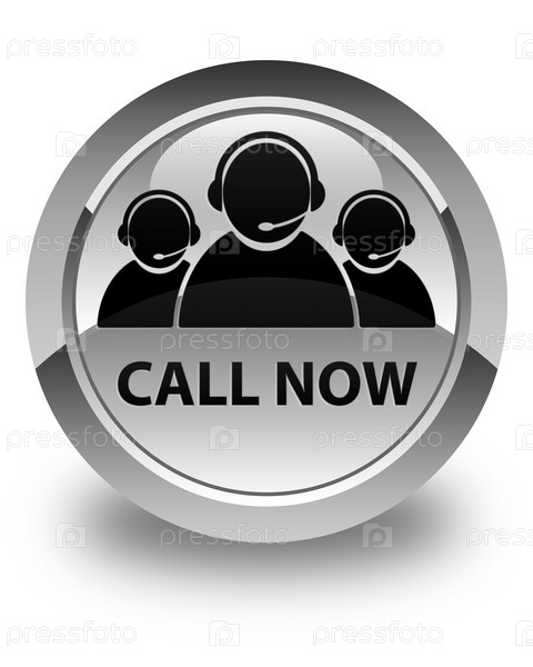 Звоните сейчас (икона команды по уходу за клиентами) блестящая белая круглая кнопка