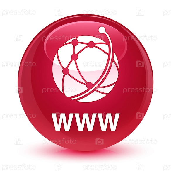 WWW (икона глобальной сети) стеклянная розовая круглая кнопка