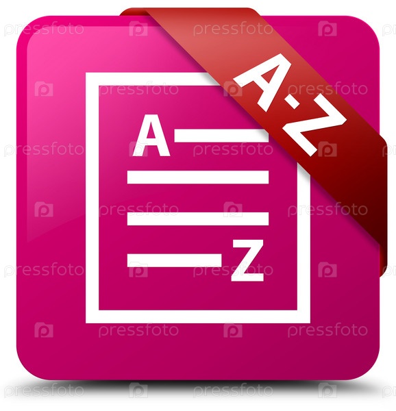 A-Z (икона страницы списка) розовая квадратная кнопка красная лента в углу