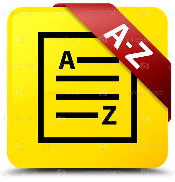 A-Z (икона страницы списка) желтая квадратная кнопка красная лента в углу