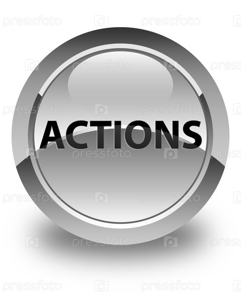 Акции блестящая белая круглая кнопка Actions