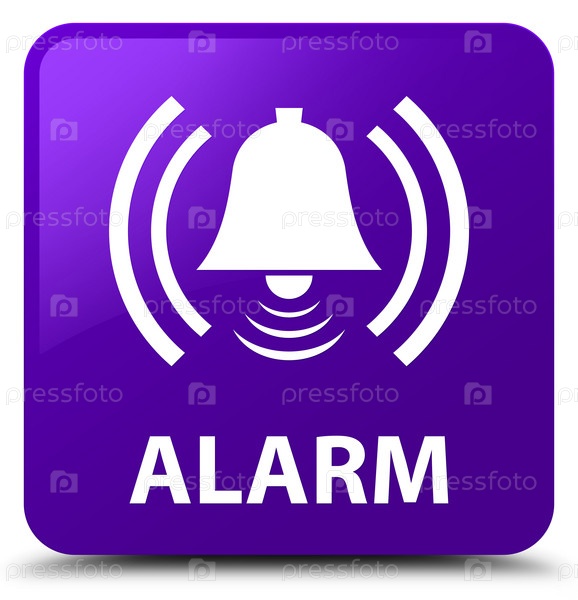 Сигнализация (икона колокола) фиолетовая квадратная кнопка
