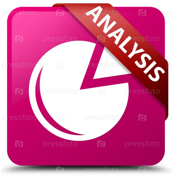 Анализ (икона графика) розовая квадратная кнопка красная лента в углу