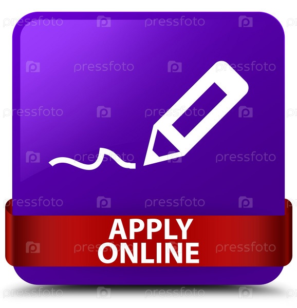 Apply online (edit pen icon) фиолетовая квадратная кнопка красная лента посередине