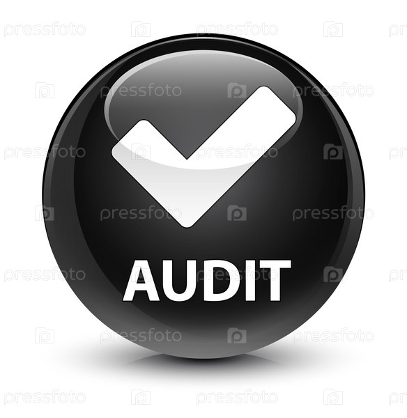 Аудит (икона проверки) стеклянная черная круглая кнопка