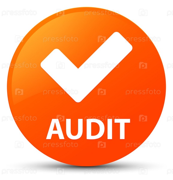 Аудит (икона проверки) оранжевая круглая кнопка
