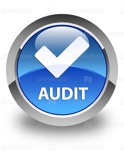 Аудит (икона проверки) блестящая голубая круглая кнопка