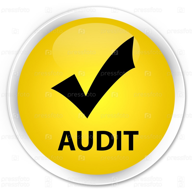 Аудит (икона проверки) премиум жёлтая круглая кнопка