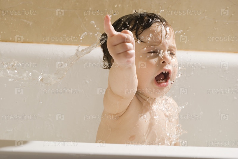 Недовольный малыш в ванне