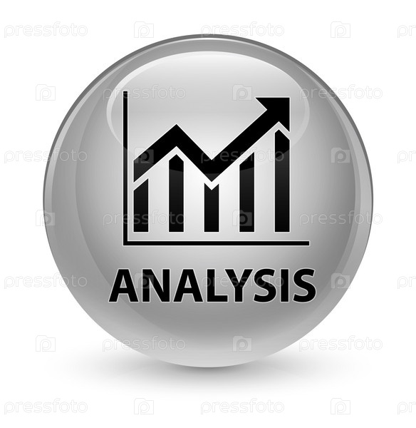 Анализ (икона статистики) стеклянная белая круглая кнопка