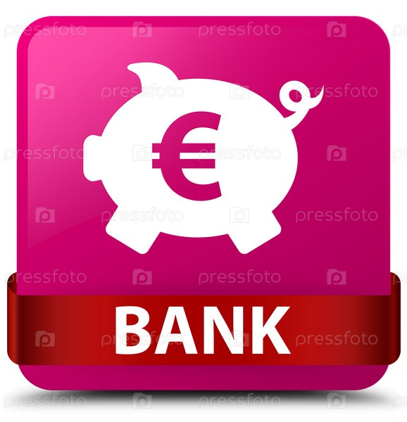 Банк (piggy box euro sign) розовая квадратная кнопка красная лента посередине