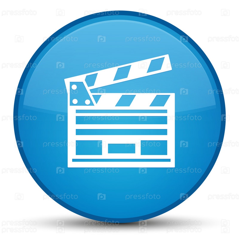 Клип с иконой кинотеатра специальный циан-синий круглый кнопка