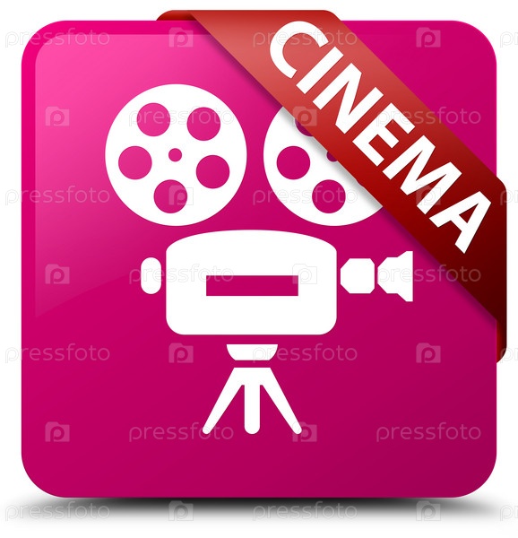 Кинотеатр (икона видеокамеры) розовая квадратная кнопка красная лента в углу