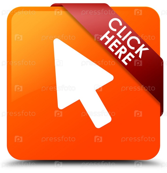 Нажмите здесь оранжевый квадратный кнопка красная лента в углу