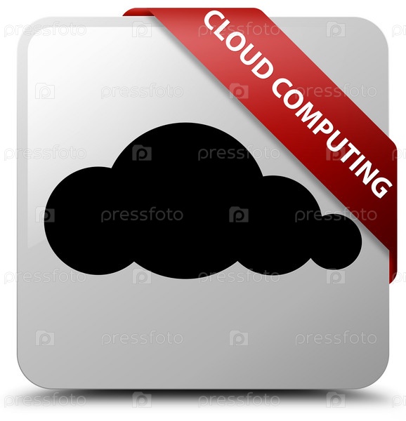 Облачные вычисления белый квадратный кнопка красная лента в углу