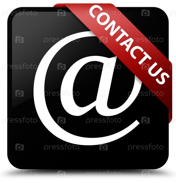 Свяжитесь с нами (икона адреса электронной почты) черная квадратная кнопка красная лента в углу