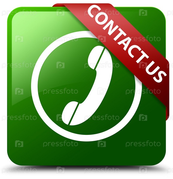 Связаться с нами (икона телефона) зеленая квадратная кнопка красная лента в углу