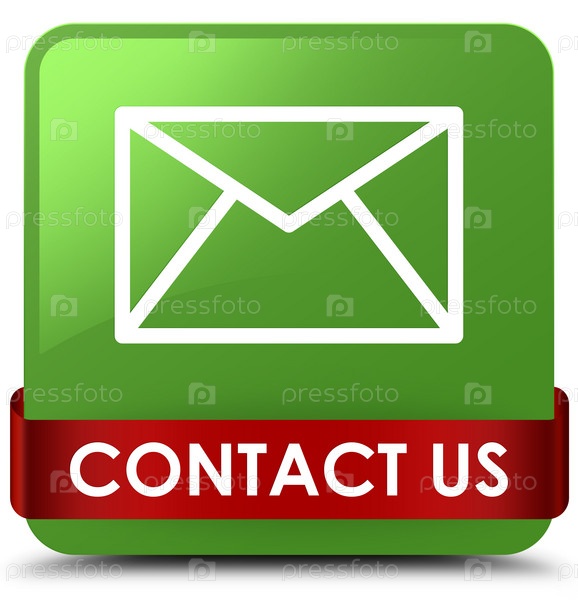 Свяжитесь с нами (икона электронной почты) мягкая зеленая квадратная кнопка красная лента посередине