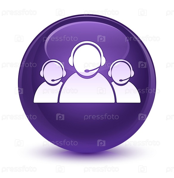 Икона команды обслуживания клиентов стеклянная фиолетовая круглая кнопка