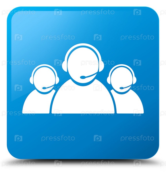 Икона команды обслуживания клиентов цыановый синий квадратный кнопка
