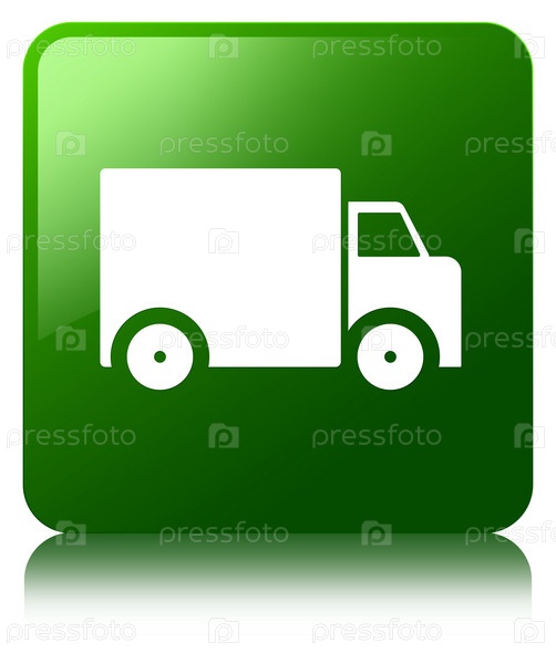 Икона грузовика доставки зеленая квадратная кнопка