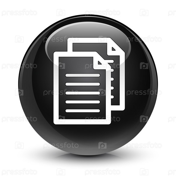 Икона документов стеклянная черная круглая кнопка