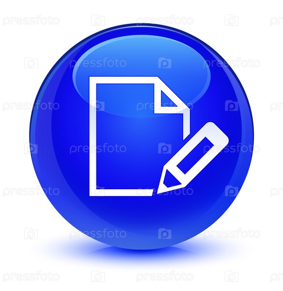 Икона документа стеклянная голубая круглая кнопка Edit