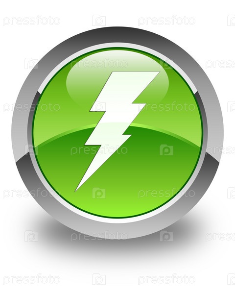 Икона электричества глянцевая зеленая круглая кнопка