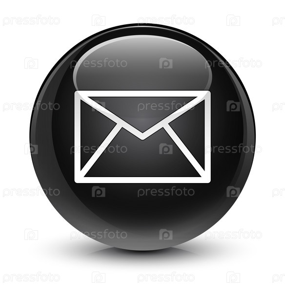 Икона электронной почты стеклянная черная круглая кнопка