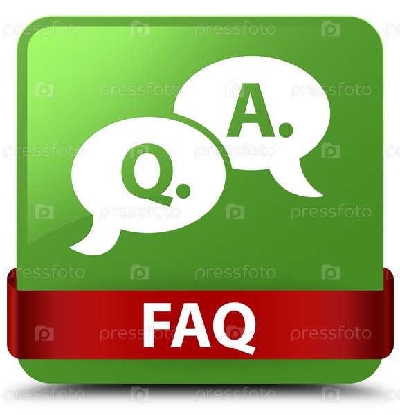 Faq (икона пузыря ответа на вопрос) мягкая зеленая квадратная кнопка красная лента посередине