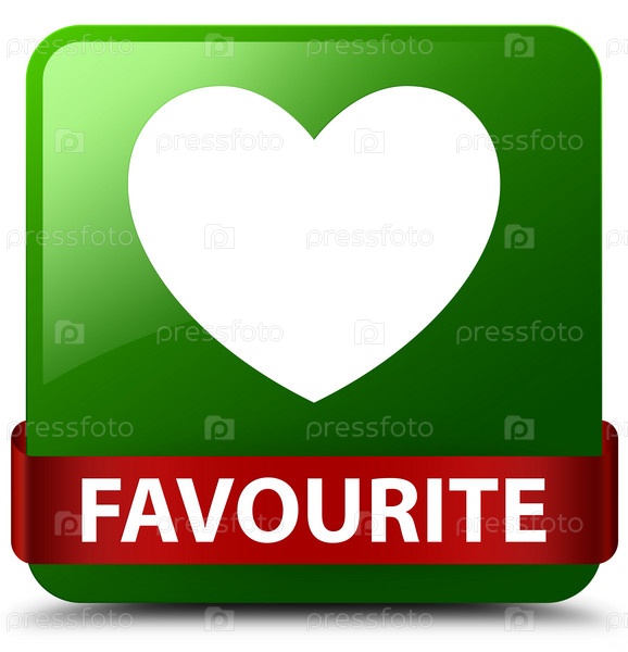 Любимая (икона сердца) зеленая квадратная кнопка красная лента посередине