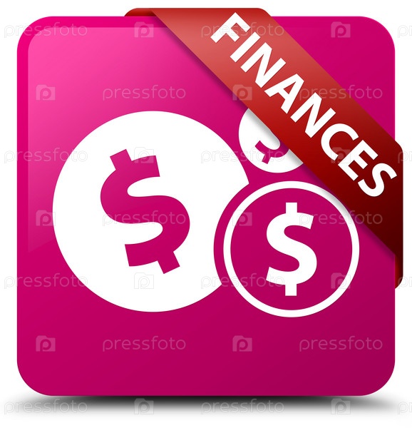 Финансы (знак доллара) розовая квадратная кнопка красная лента в углу