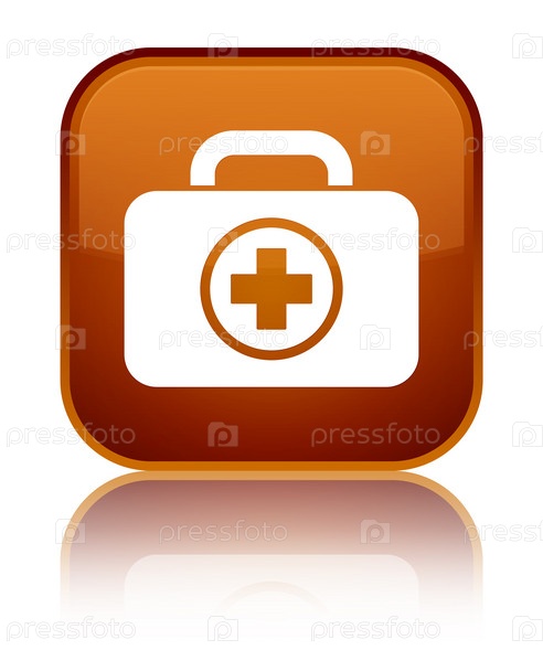 Икона аптечки первой помощи специальная коричневая квадратная кнопка