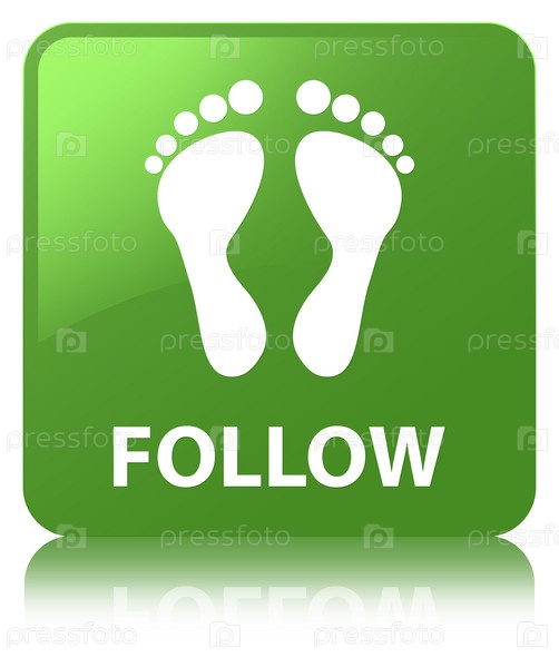 Следуйте (икона отпечатков) мягкая зеленая квадратная кнопка