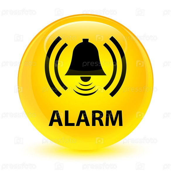 Сигнализация (икона колокола) стеклянная желтая круглая кнопка