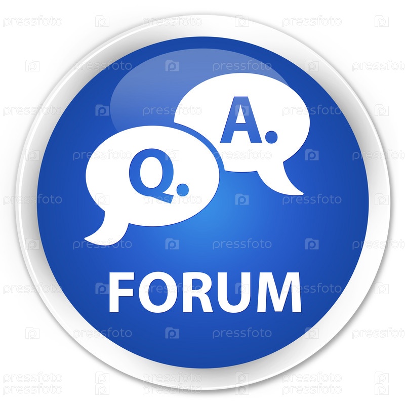 Форум (икона пузыря вопросов и ответов) премиальный синий круглый кнопка