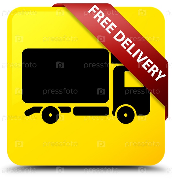 Бесплатная доставка желтая квадратная кнопка красная лента в углу