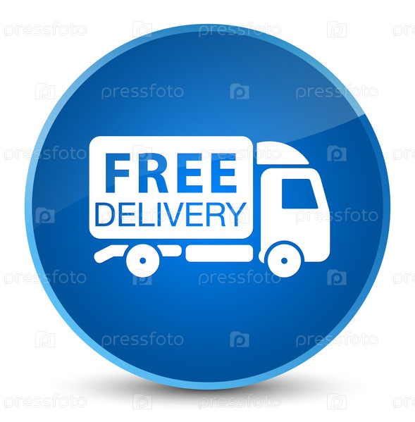 Икона бесплатного грузовика-доставщика с элегантной синей круглой кнопкой