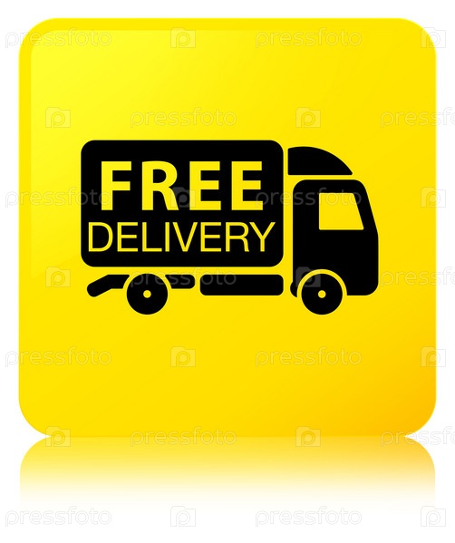 Икона бесплатного грузовика для доставки желтой квадратной кнопки