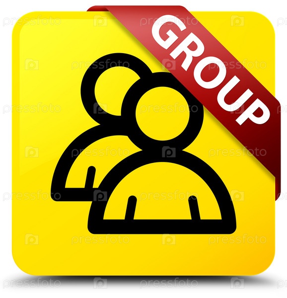 Групповая желтая квадратная кнопка красная лента в углу