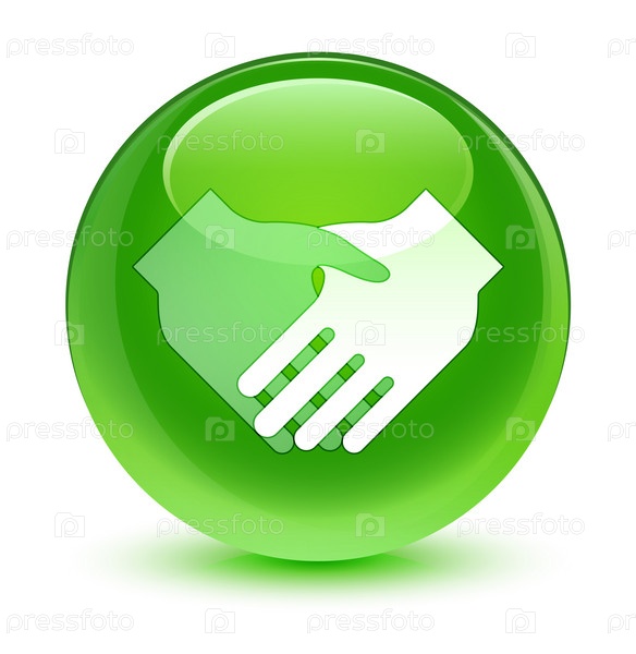 Икона рукопожатия стеклянная зеленая круглая кнопка