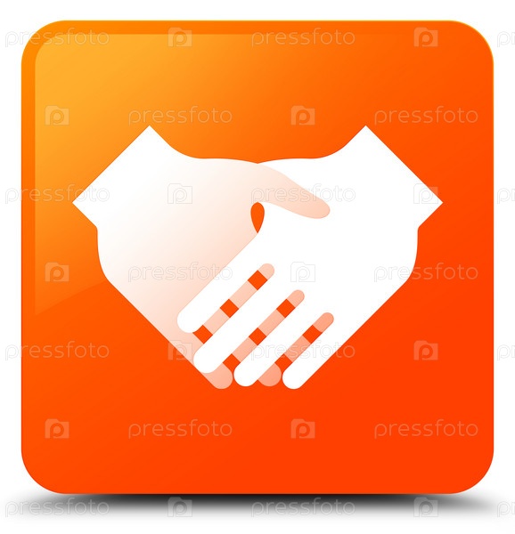 Икона рукопожатия оранжевая квадратная кнопка